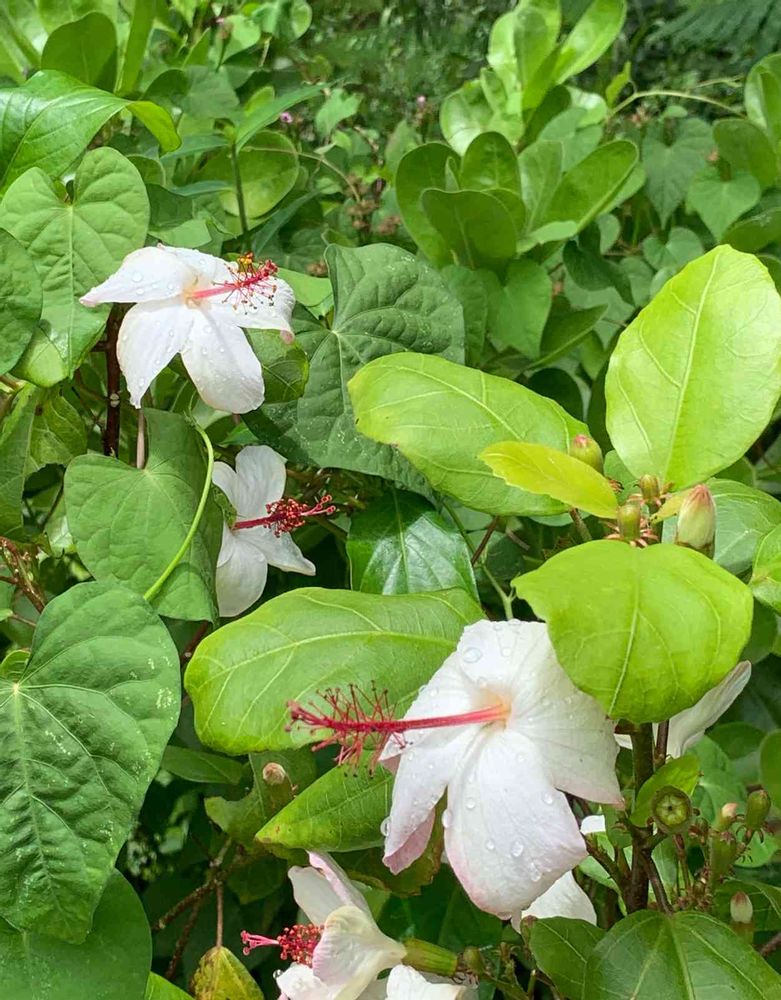 カウアイ島固有種、葉が大きく、花が小さい。咲き始めは白、のちに少しピンクに…💕