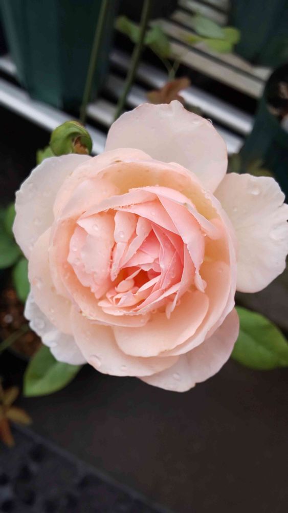 ヘリテージ🌹初開花でちゃいこさんが遊びに来た時にいただいたバラ🌹です。