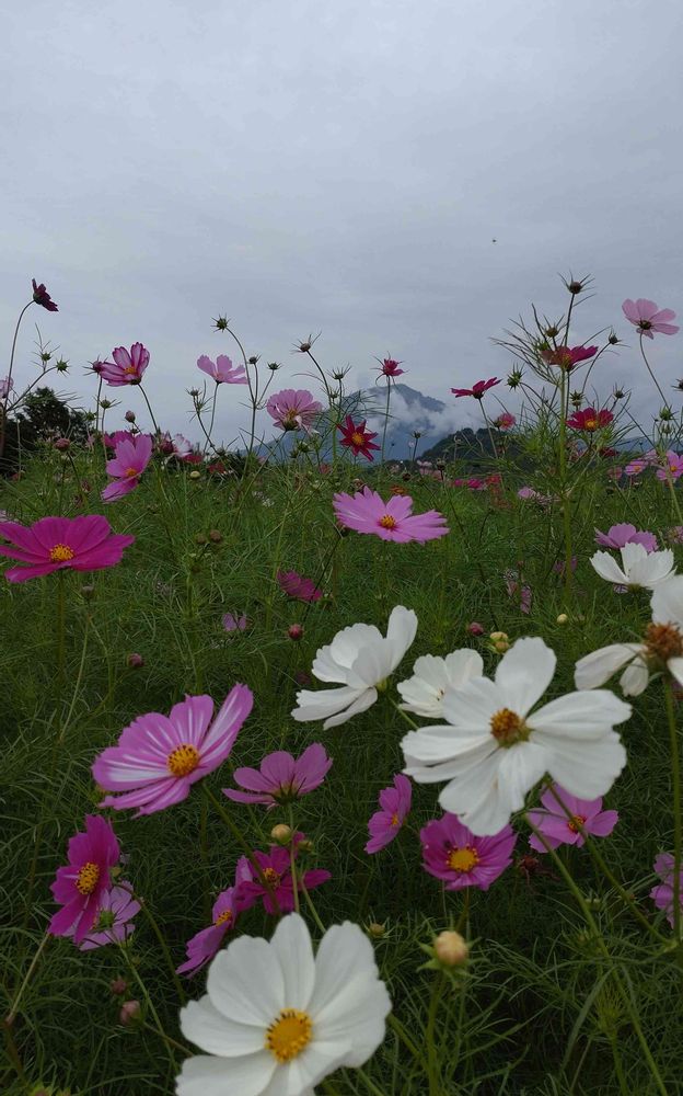 大山が見える広大な景色の中に、こすもが咲いてるんですね〜