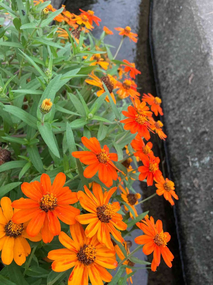 オレンジ色のジニア、いいですね〜 乱れ咲き🌼🧡