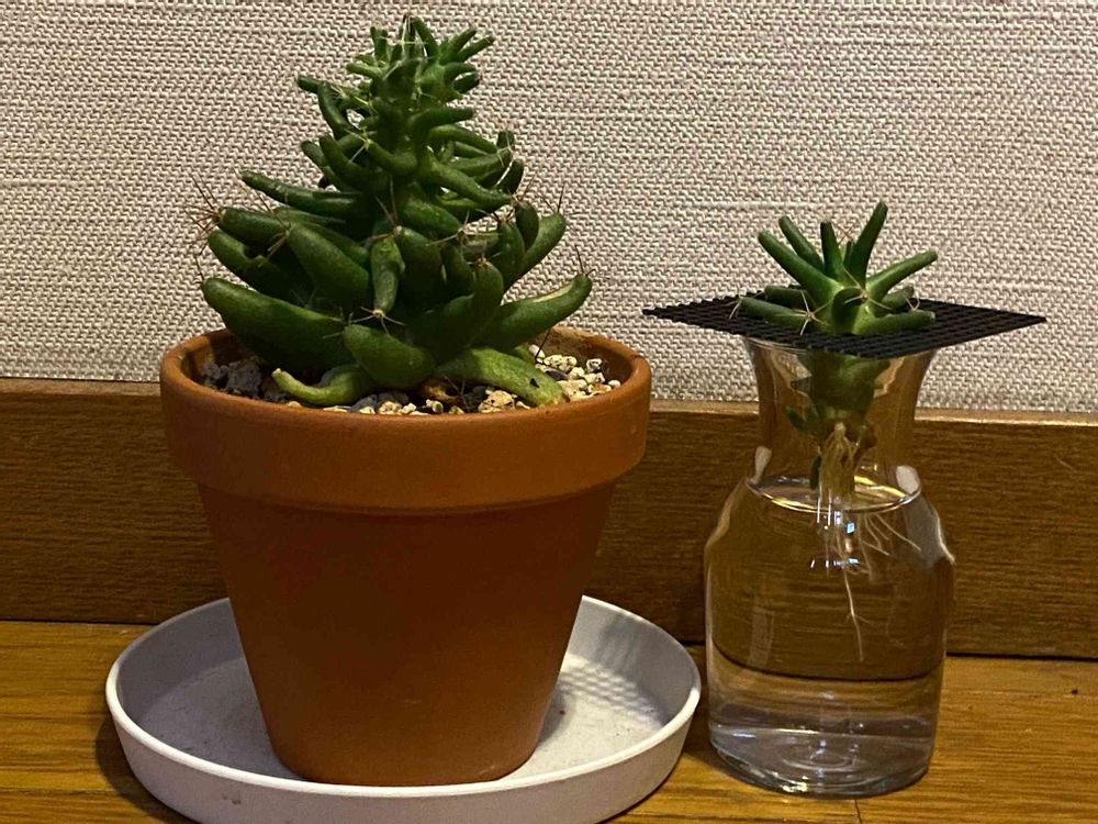 徒長した金星を胴切りして、水耕栽培にしたところ、かなり根が伸びてきました😃
