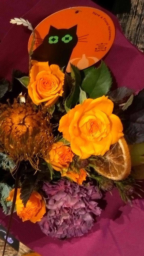 お花の上に黒い物体🤭あるだけでハロウィン気分🎃👻
