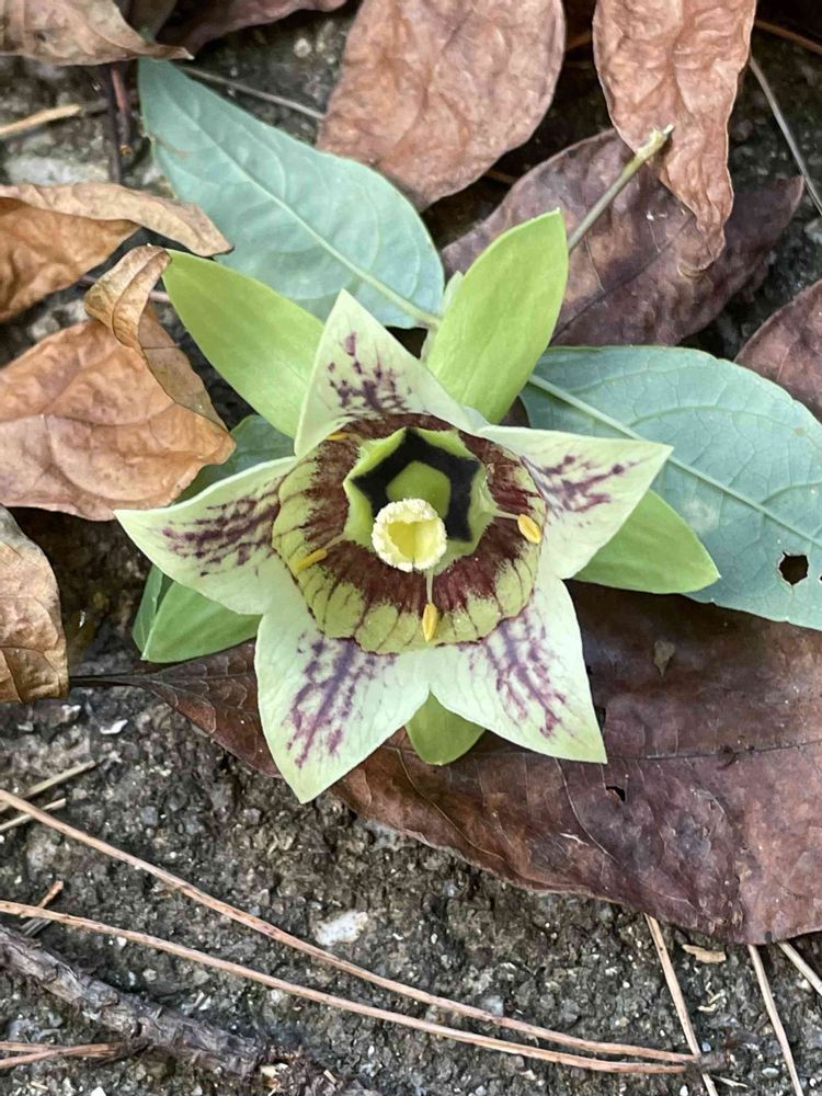 「ツルニンジン」10月5日にお寺のある国立公園公園にに行った時、コウヤボウキに気を取られていたら、階段に落ちていました。