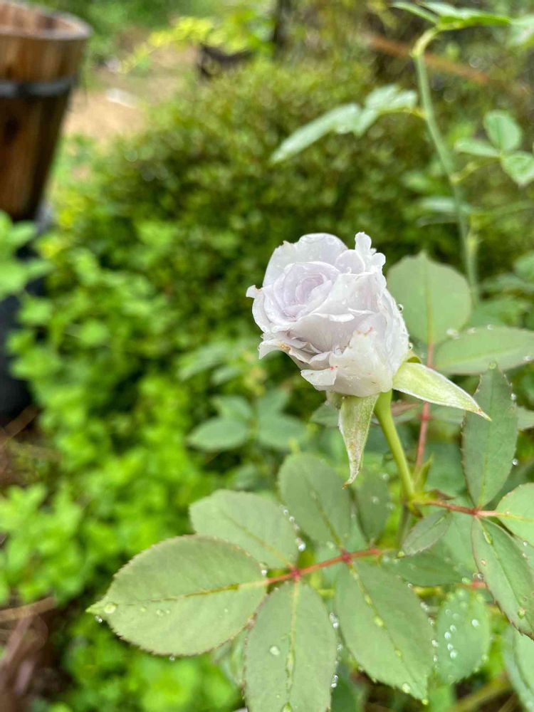 こんにちは~😊、うす〜い🎶、紫のばらさんがもうすぐ開くところだね🌿✨🎶