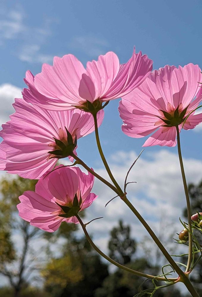 下から見たコスモスが陽に透けるように綺麗でした🩷