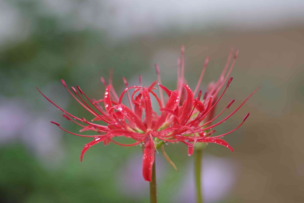 雨上がりの彼岸花💧雫をまとって綺麗ですね。゚+.゚(*´∀`)b゚+.゚😊