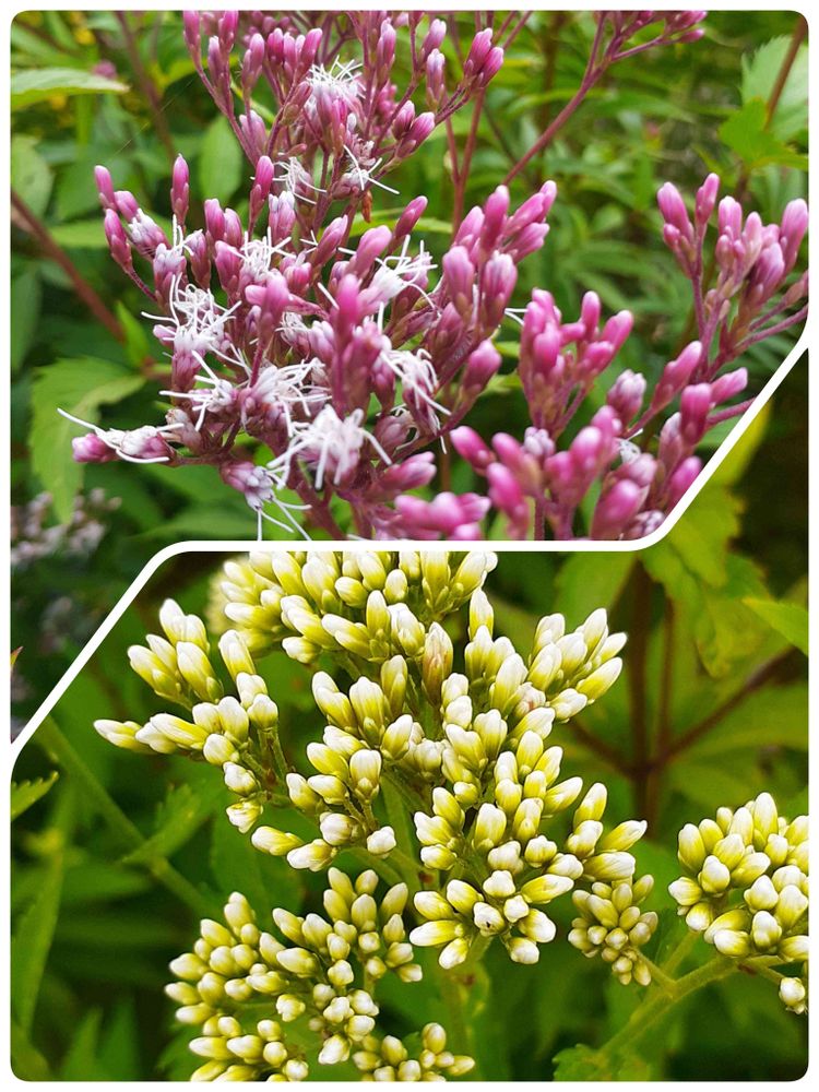我が家のピンク色のフジバカマが咲き始めましたが、白花の蕾はまだまだ固くて、お髭が出ていません😊🌿
