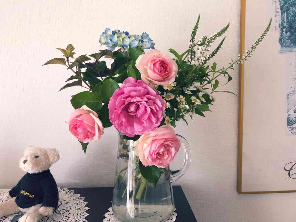 バラもアジサイも一緒に咲いてくれるのは今だけかな💕