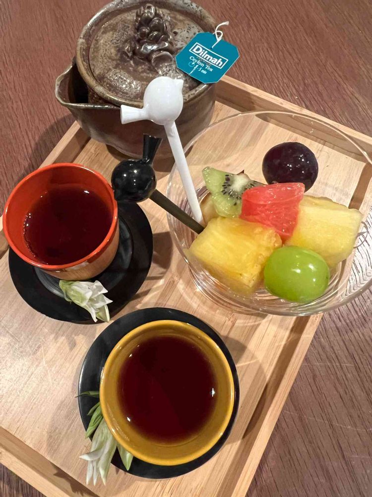 人生お初のミックスカットフルーツを買いました。一人暮らしには有り難いかもとお紅茶も迷うことなく2杯ゴク飲みしました。茶かい?な茶会です😄