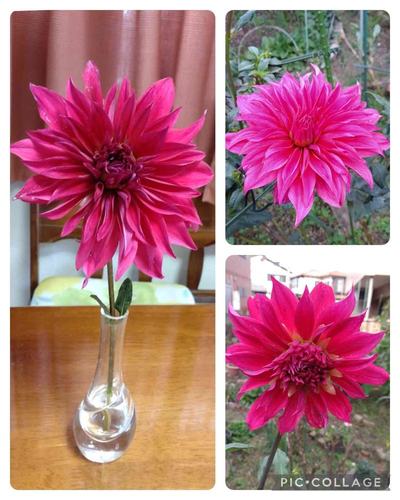 昨日の強い風で、茎の根元から折れました。咲くと花が重いから、全部支柱に縛りました。