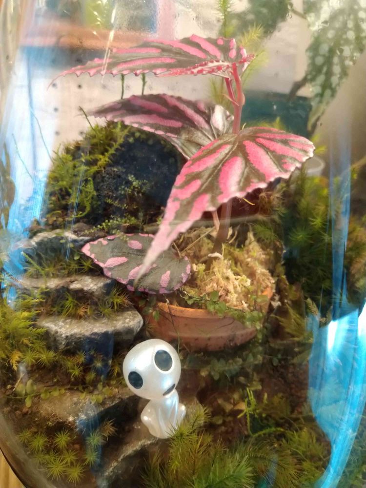 苔テラリウムの中の、ベゴニア・ジュラウぼっち株。