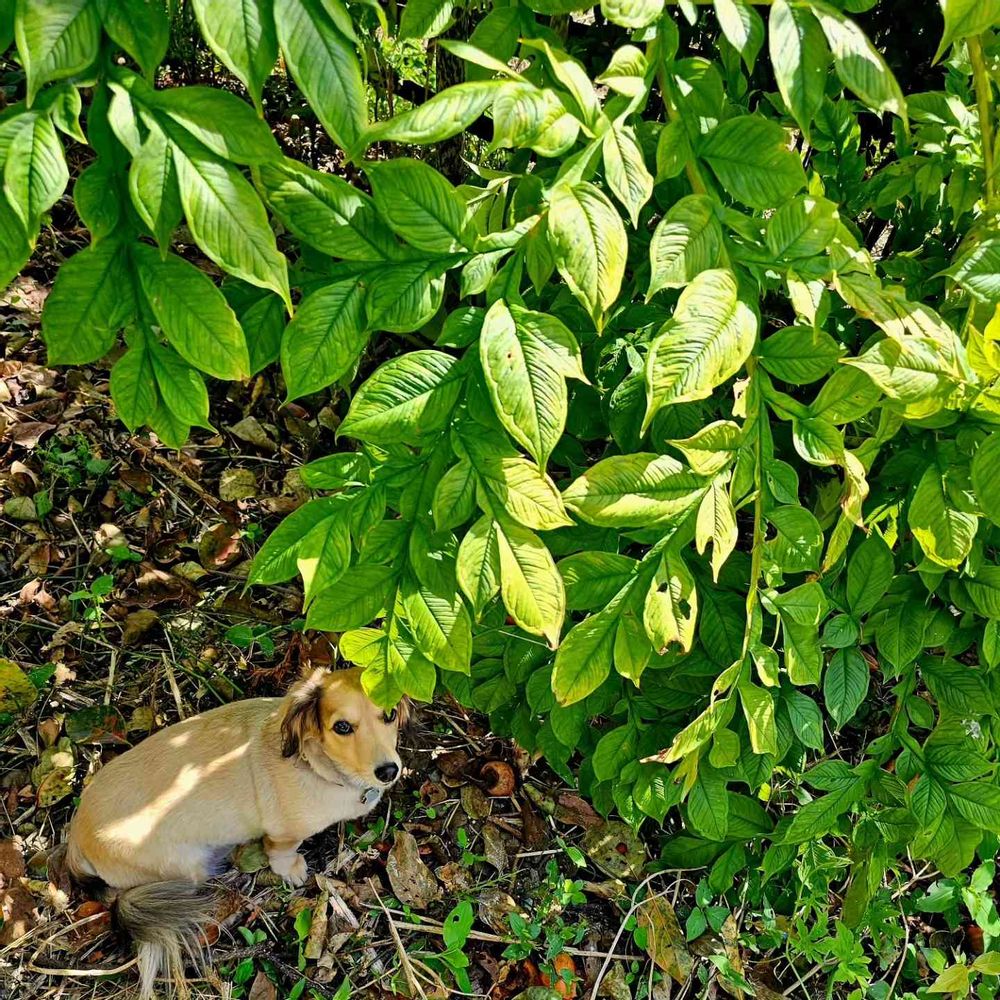 こんにゃく芋の葉っぱと愛犬🎶