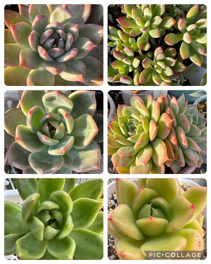 多肉達、ほんのり紅葉して可愛くなってきたよね😊今日は徒長した子をカットして葉挿しも沢山出来た。