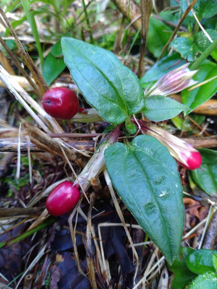登山道の足元に十字手裏剣?開花後の今、実の成長過程を見せてくれる株を見つけました。2023.10.11 高山市船山