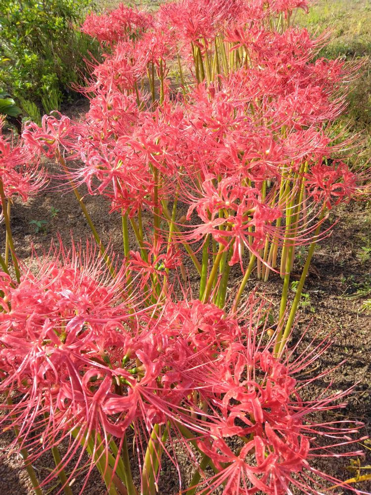 わが家の台所から赤色が見えたので歩いて見に行ったら、沢山のヒガンバナが咲いて居ました🥰