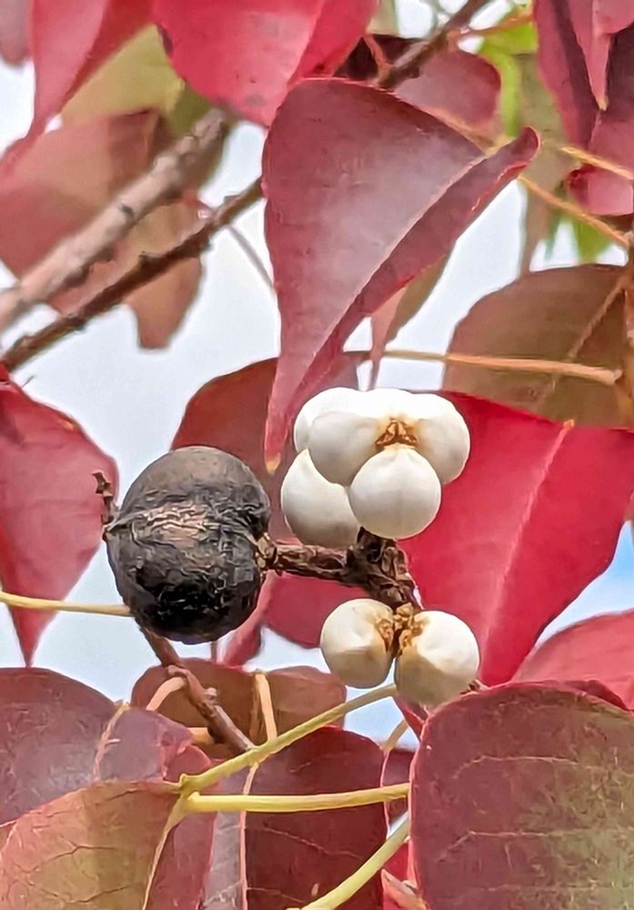 通りすがりに見かけました 南京櫨(ナンキンハゼ)の実 と 紅葉☺️