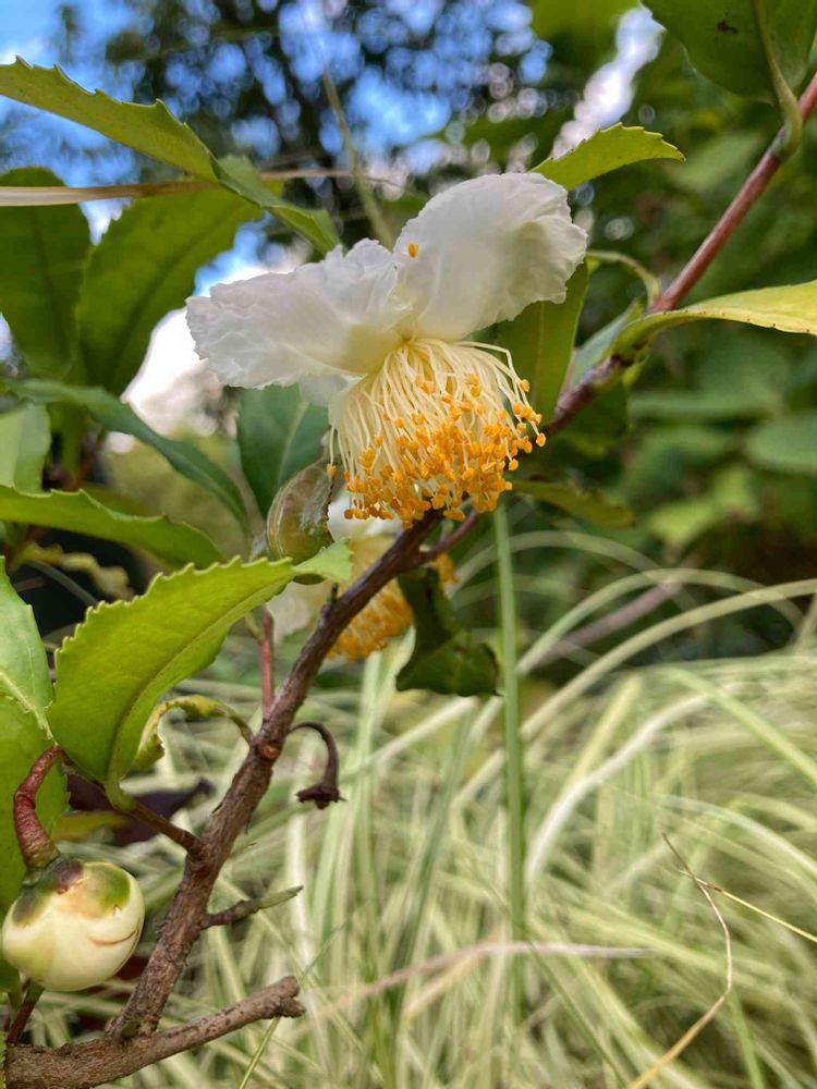 一昨日のチャ🍵の花です。「お茶の花は食べることができ、天ぷらにして食べたり、煮詰めてお茶漬けの具にしたり、という地方もあります。さらに茶の葉と同じく、煎じて飲むこともあるそうですよ。」お茶の小野園さんHPより