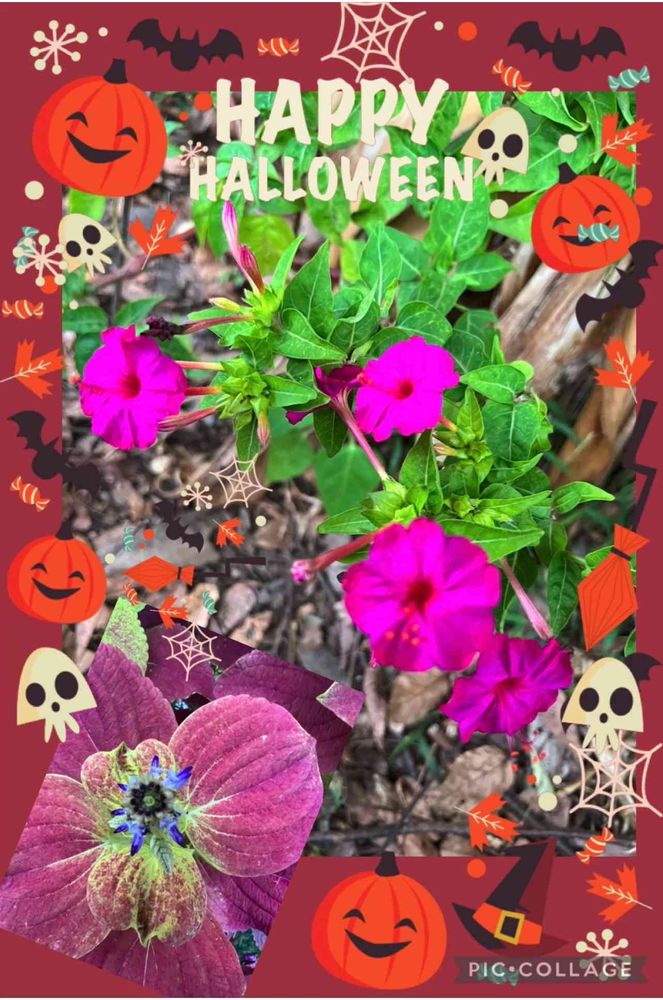 ハロウィン🎃仕様のpicに鮮やかなピンクのおしろい花🩷