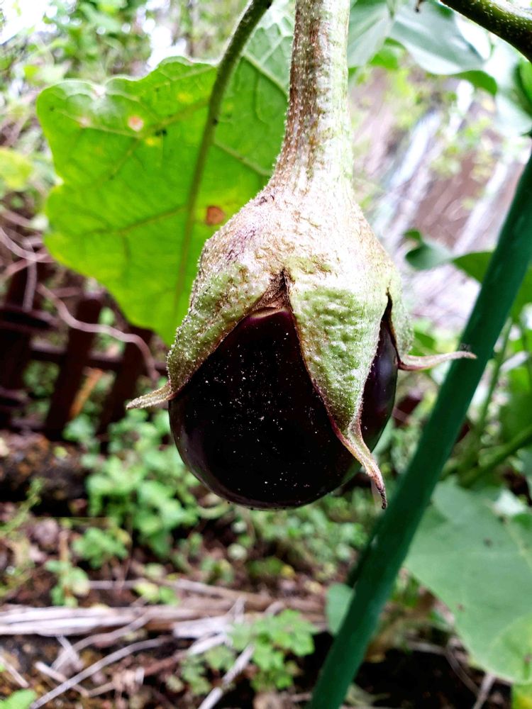 菜園の野菜でただ一つ夏の暑さを乗りきった米ナスです。