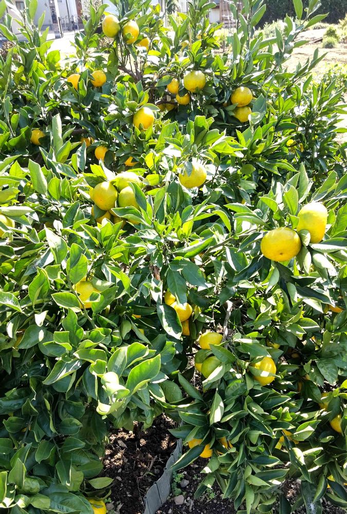 通勤途中のよその家の畑の隅に立派なみかんの木、大きいのがたくさん実っていました。