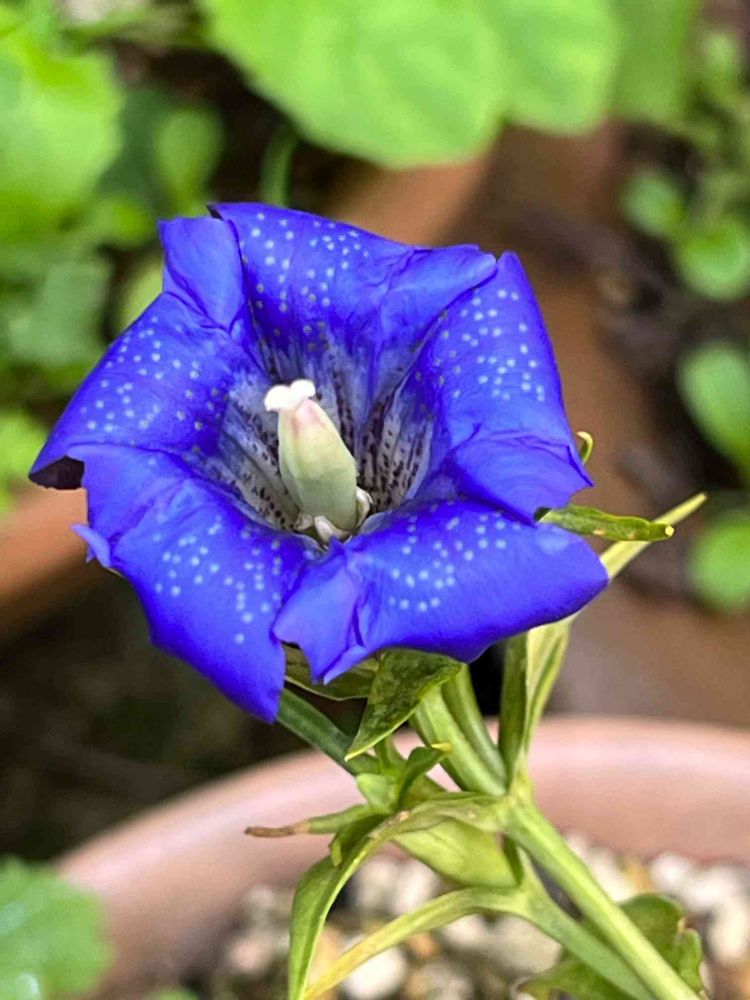 この甘木リンドウは鮮やかな色が好きなんですが、鉢から垂れ下がった茎が「奥さん、わてもうあきまへんわ🥺」状態だったので、私も半ば諦めてたんです🤦♀️