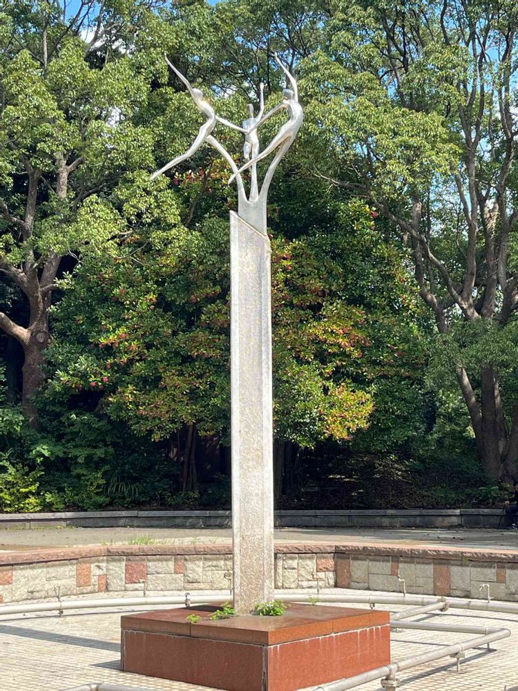 青葉の森公園のシンボルの噴水⛲️です。周りには、沢山の大きな木🌲があります。
