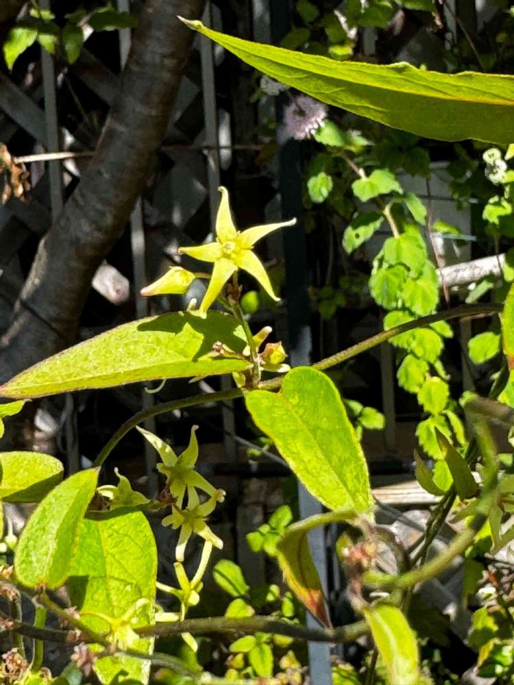 その中の1本の株に淡黄緑色の花がつきました。アズマカモメヅルのようです。