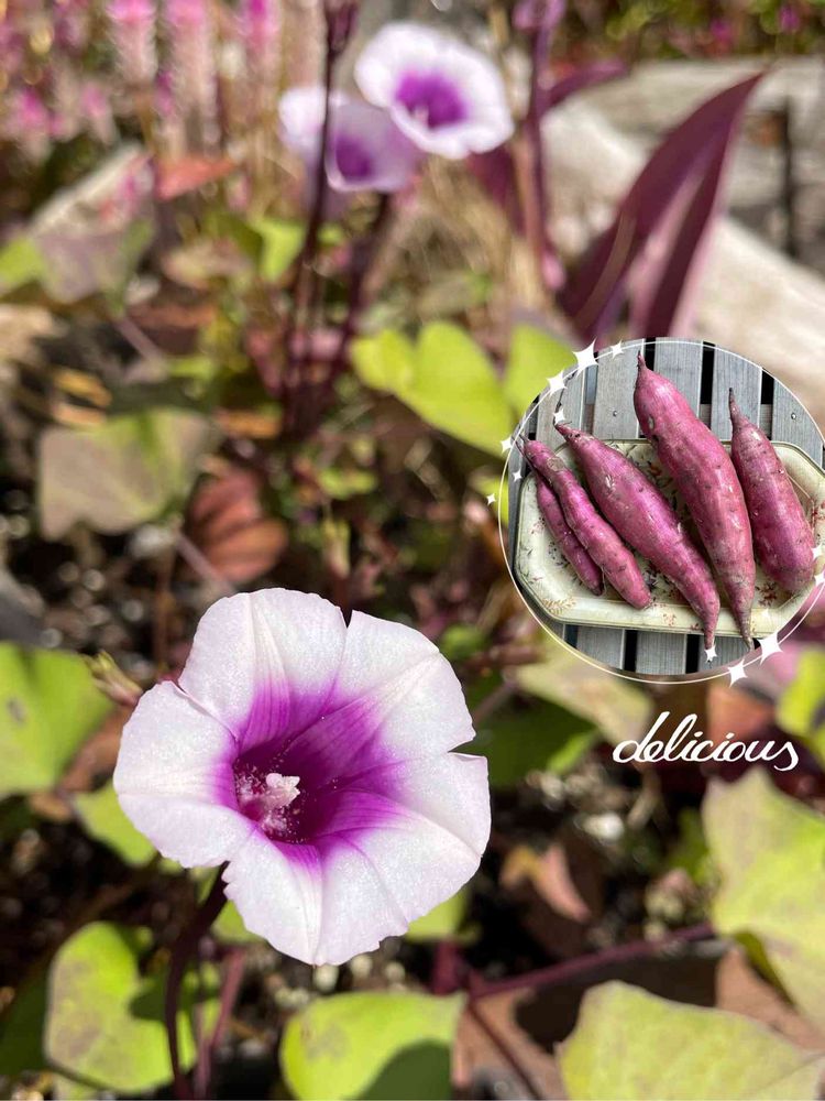 サツマイモのお花、本当に初めて見ました!🍠🌸🌿😍