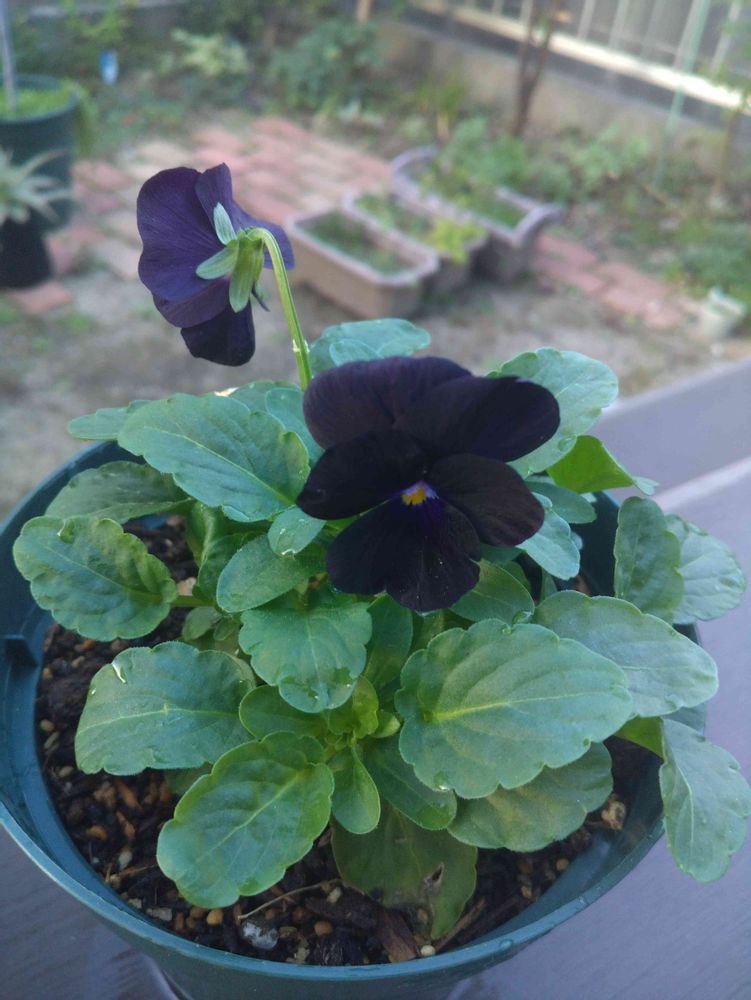 今シーズンの初ビオラはほぼ黒🌚だけど、よく見ると濃紺にも見えて深みあって非常に良い🖤😉