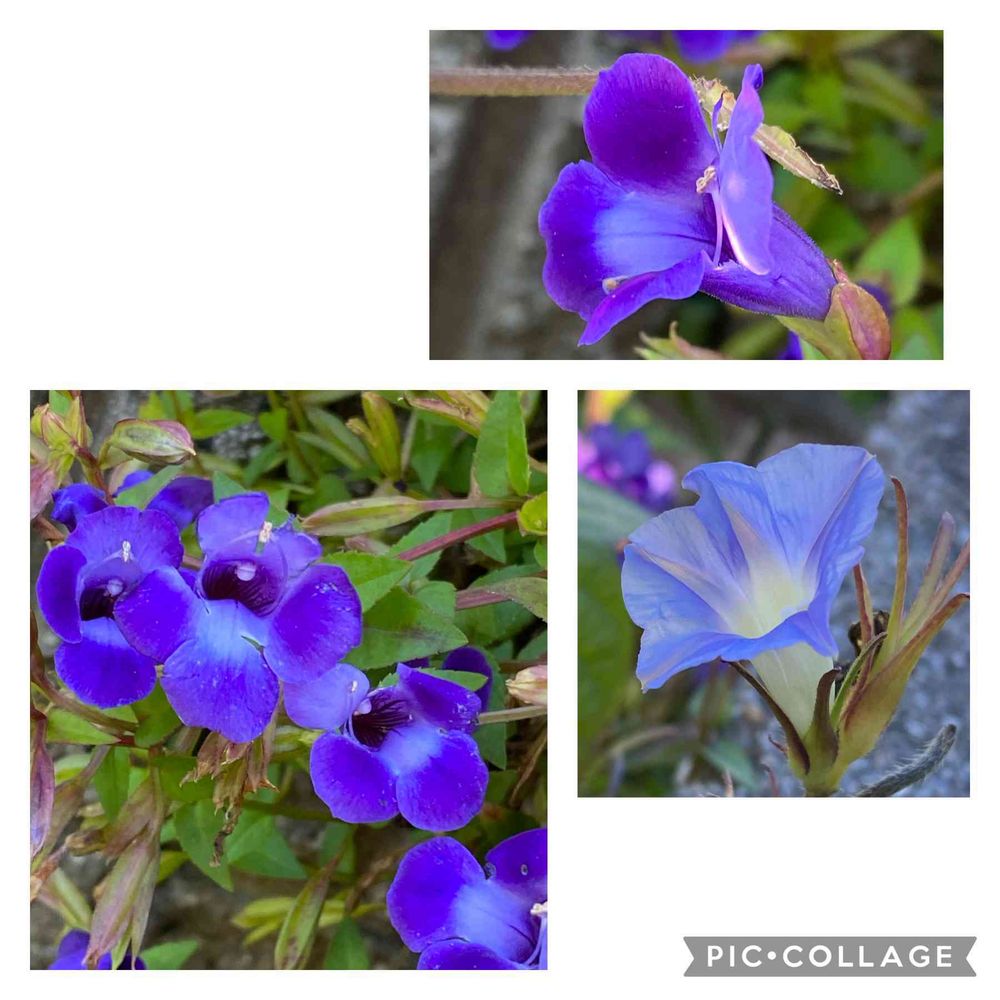 あれ、色の薄いトレニアが咲いていると思ったら、朝顔でした。トレニアの中に朝顔のつるが伸びていたのでした。