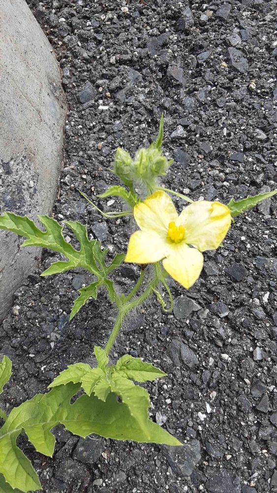電柱とアスファルトの隙間から、蔓を伸ばして黄色い花が👀