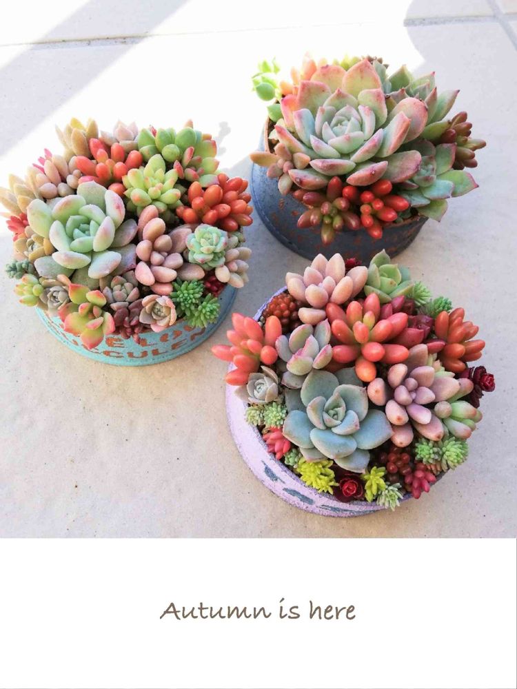 かわいい色に紅葉したのでリメ缶に寄せ植えしました🍁