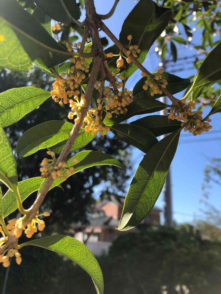この金木犀、娘の中学卒業時の記念樹なんです。