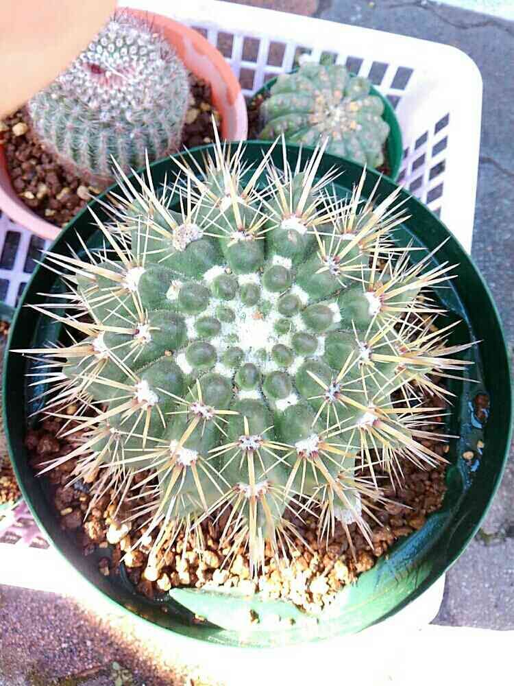 花咲く前のノトカクタス獅子王丸です。蕾が出る場所は刺を出さないなんて考えてますよね〜