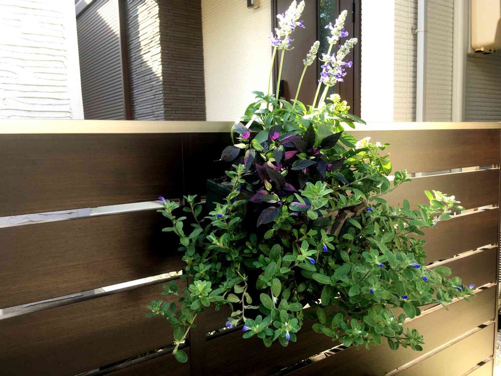 初めてのハンギングで花のポットを入れ込むのが大変でした。