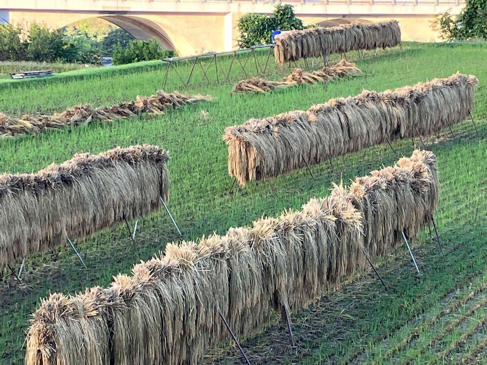 お話を伺ったら、この田んぼのお米は、農薬は使わず、コンバインも使用しないで収穫されているそうです。