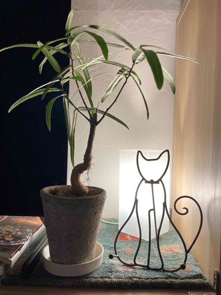お気に入り✨テレビ横のワイヤー猫オブジェとボトルツリー🪴✨