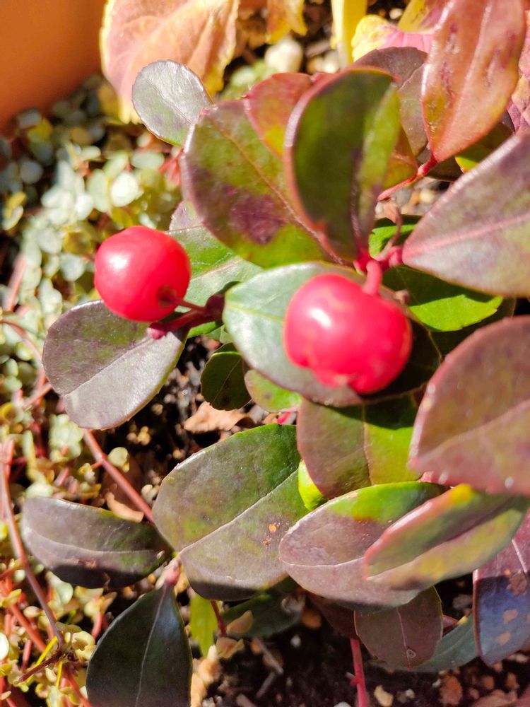 玄関のチェッカーベリーさんです。❤️色の実が、可愛いい!🥰