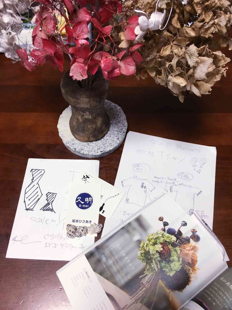 私、弟の店 ホルモン&ジンギスカン屋 頂 イタダキ おちょこ アイコン と私の屋号 入り 兄弟のROGO入りオリジナルTシャツとドライフラワー花束を用意するつもりです(^。^)