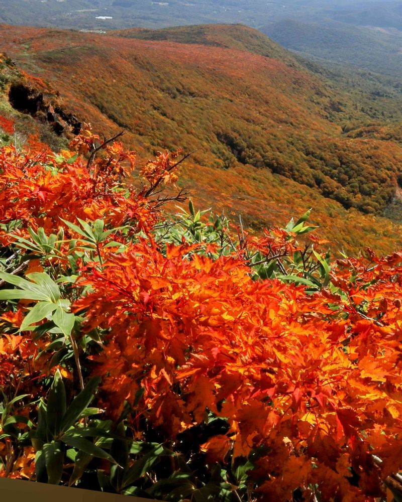 栗駒山の全山燃えるような錦の山肌を燃えるような紅朱色が彩っていました🍁