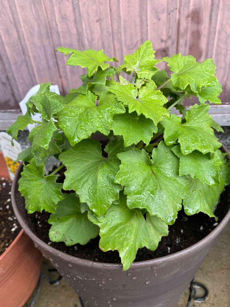 植え付け後、1週間で8号鉢がピッタリになりました。 すごい成長です。