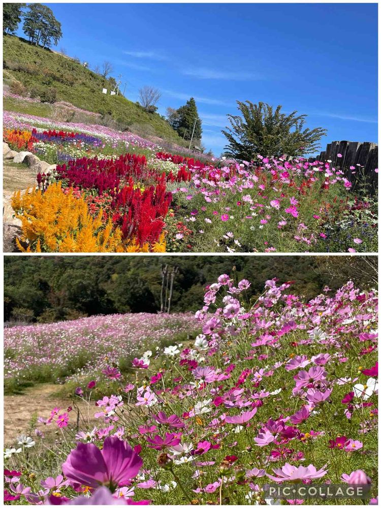 藤の葉っぱ🌱さん 凄いたくさんのコスモスのお花やケイトウなどのお花たち🌸綺麗ですね。