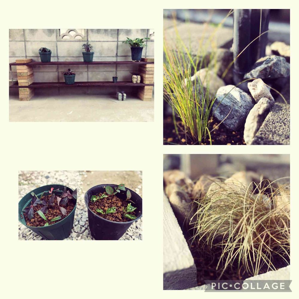 カレックスの植え込み、挿し木付くか分からないけど笑、霜除けの棚ペンキ塗りと