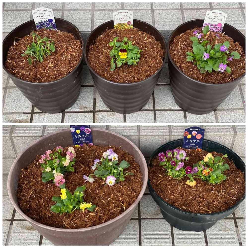 新色のフィオリーナ ブルーイエローがヒョロヒョロに伸びていたので 切り戻して植え付けました