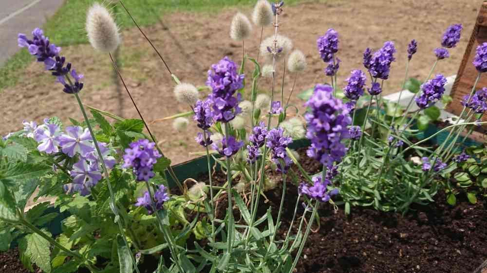 リンゴ箱に念願のラベンダーを寄せ植えしました🙆
