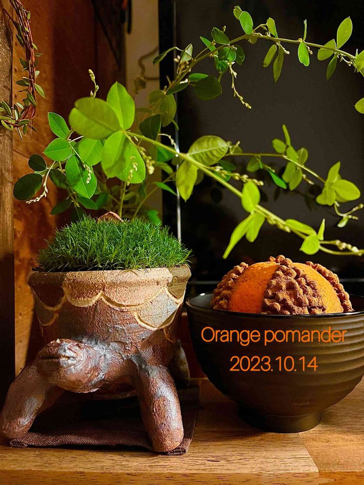 オレンジポマンダー🍊は幸運を呼ぶとか?良いことあるといいですね🥰となりの🐢さんの器いいなぁ💓💓