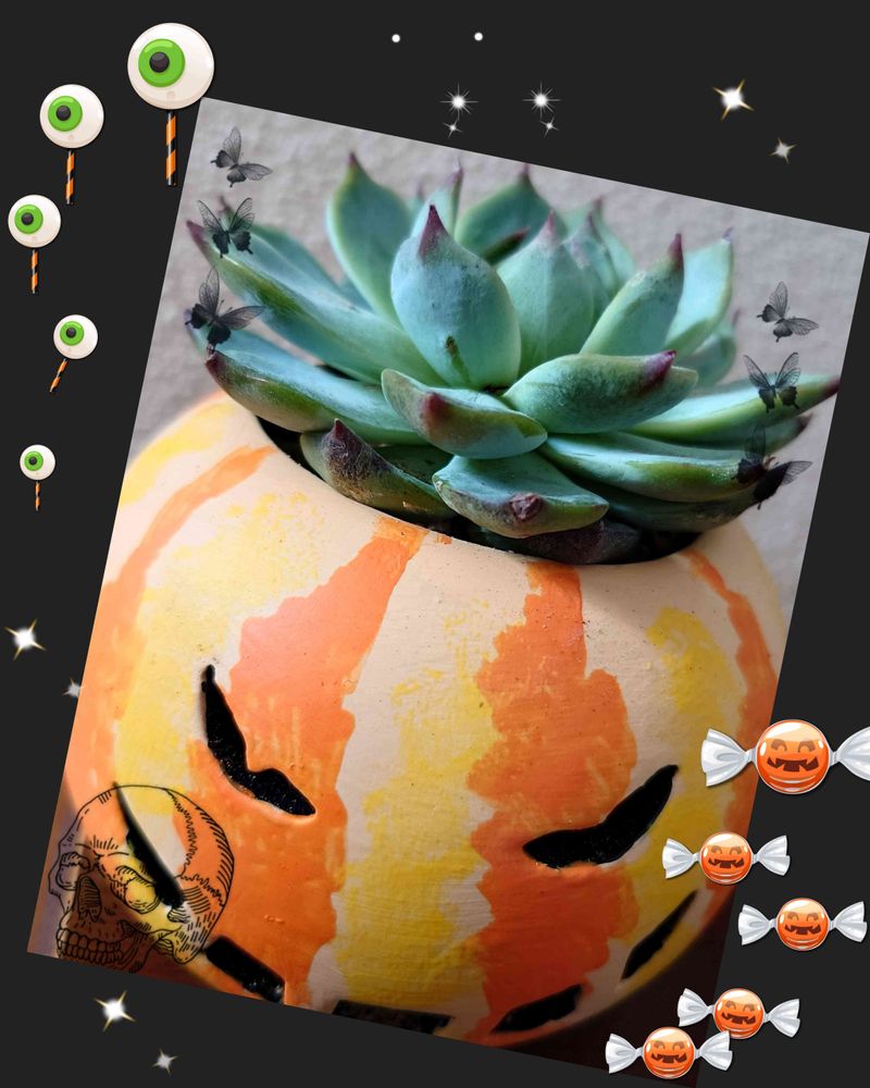 (*/ω\*)キャー!! ハロウィンカボチャの鉢なかなか怖いですね〜いつもの雰囲気のねこぐるみさんから来たとは思えないチョイスですね素敵っ(*´ ˘ `*)🐾エヘヘ