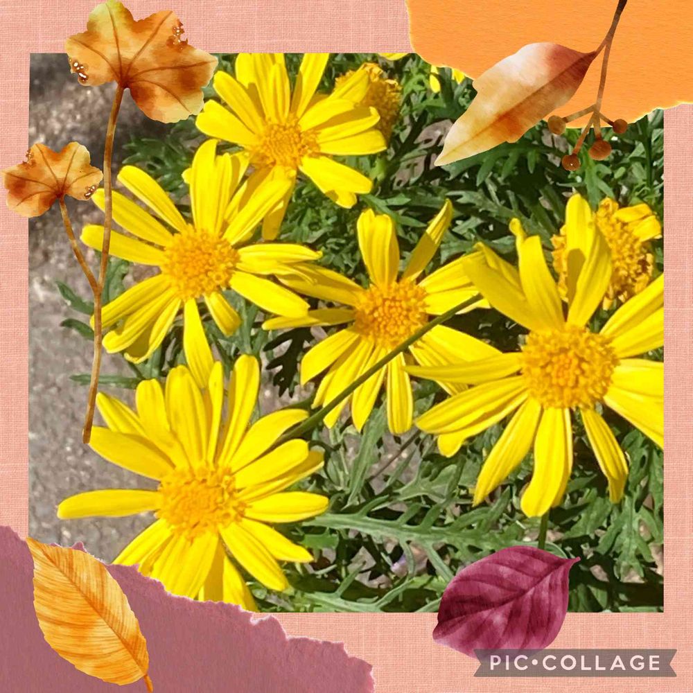 そんな想いを感じさせる、ビタミンカラーのデージーの華やぎ、そして秋のコラージュが、気持ちをルンルンに(⌒‐⌒)🎵