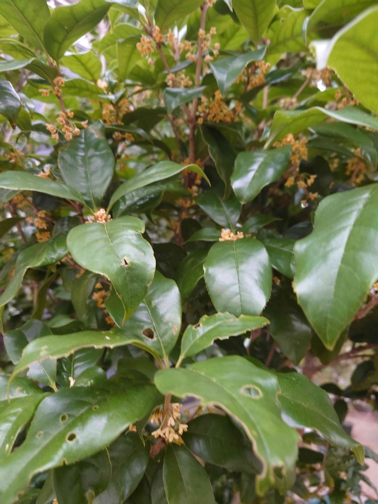 オレンジの金木犀より白っぽくて香りは少なめです。
