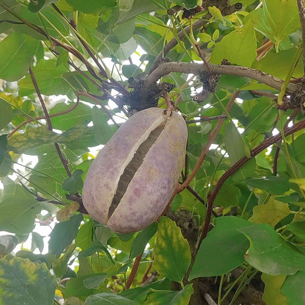アケビなつかしい。祖父母が、山にキノコ狩りに行って、アケビを取ってきてくれました。なってるのを見るのははじめてです。
